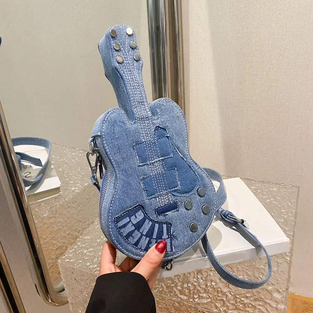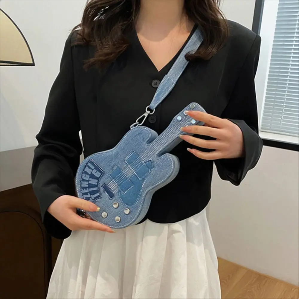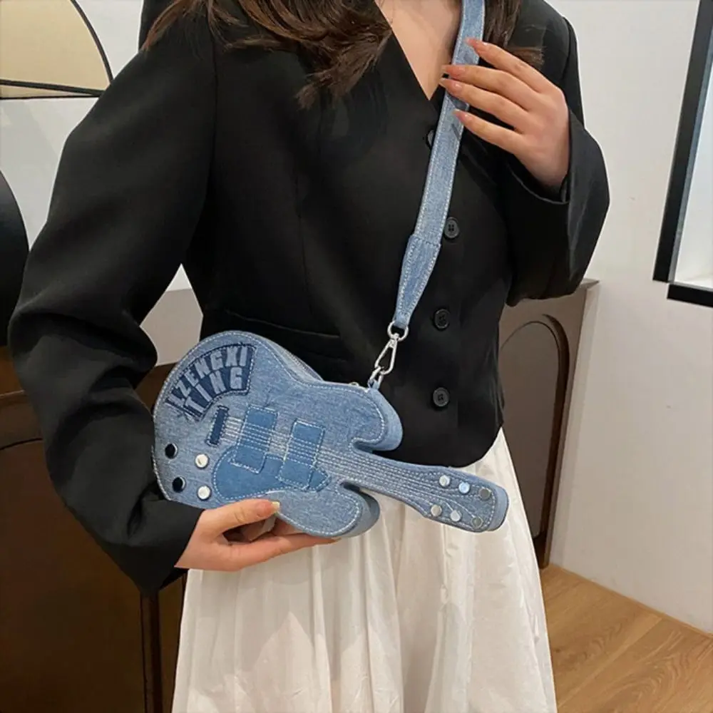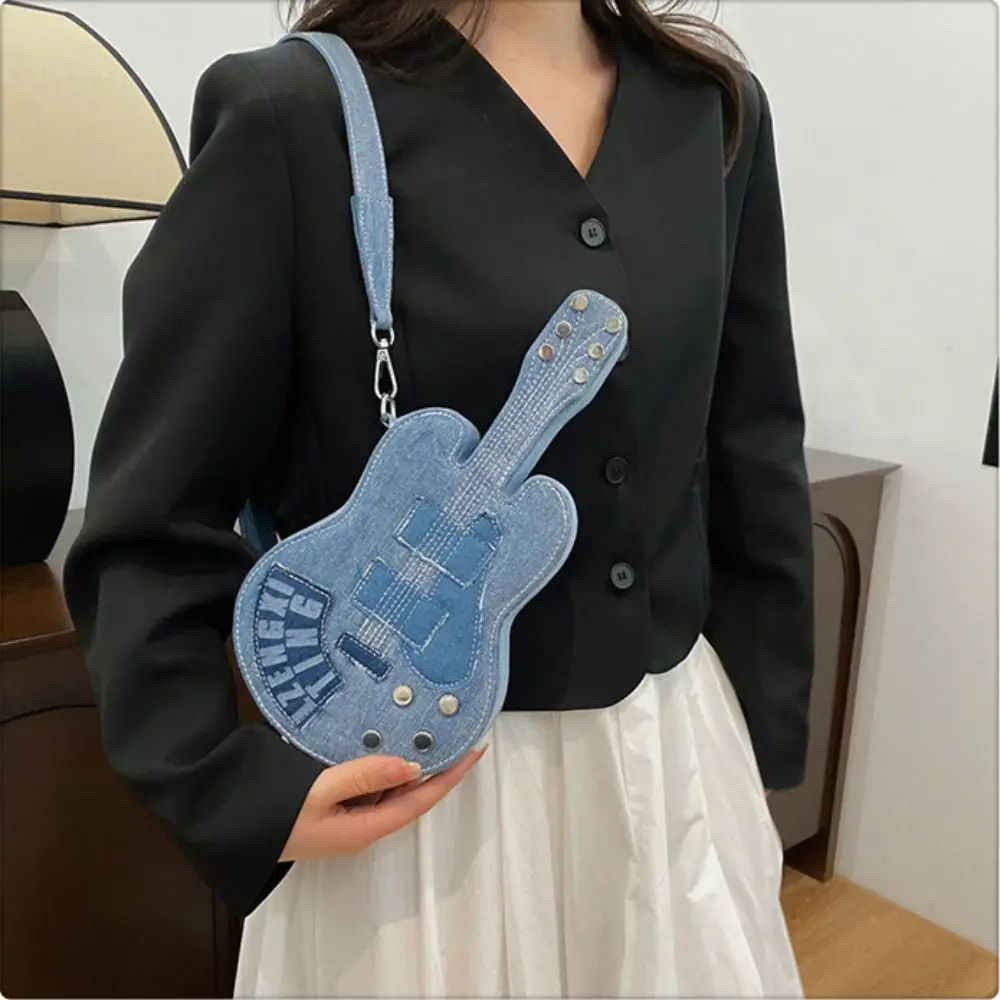 Simple Vintage Guitar Crossbody Jeans Bag Large Capacity Y2k