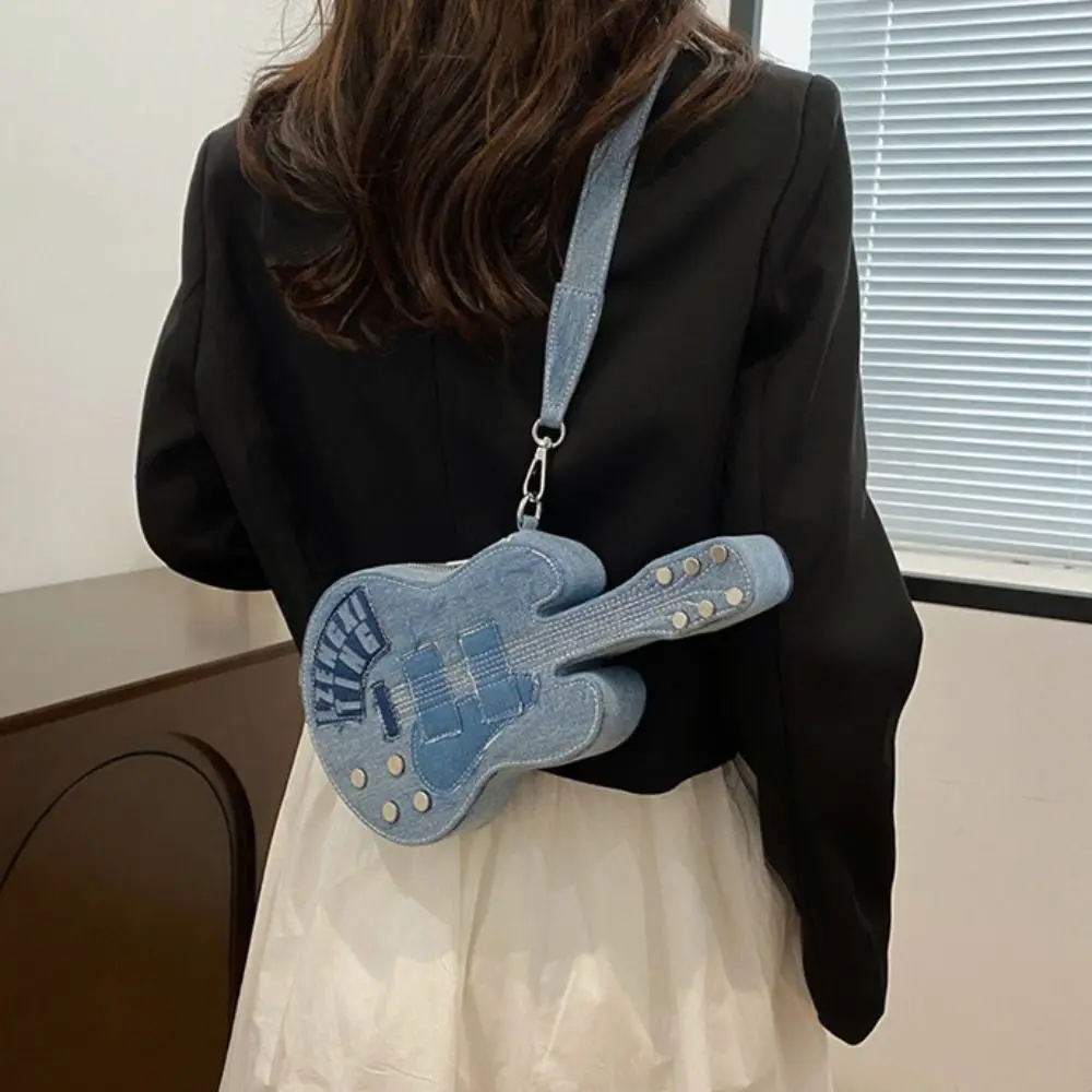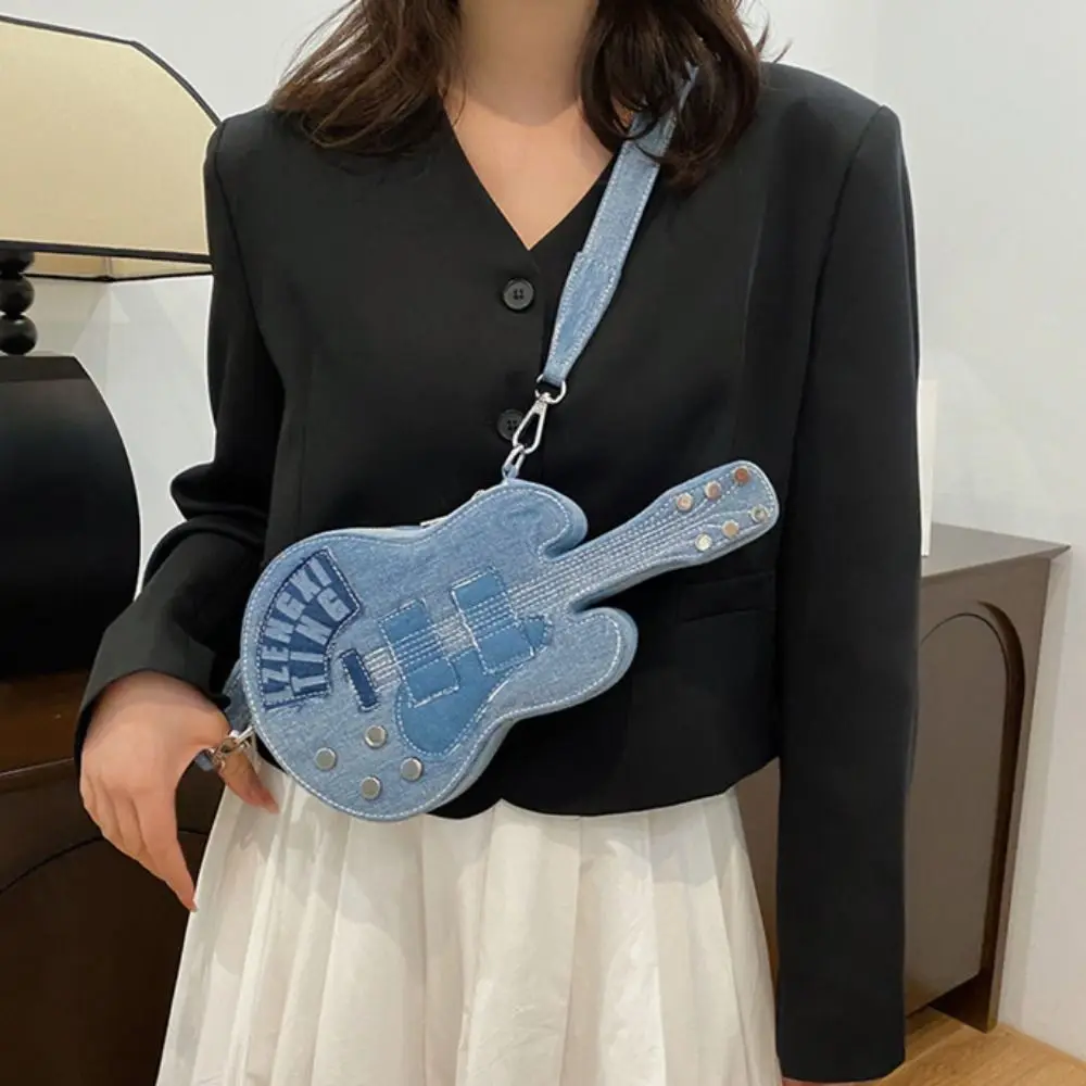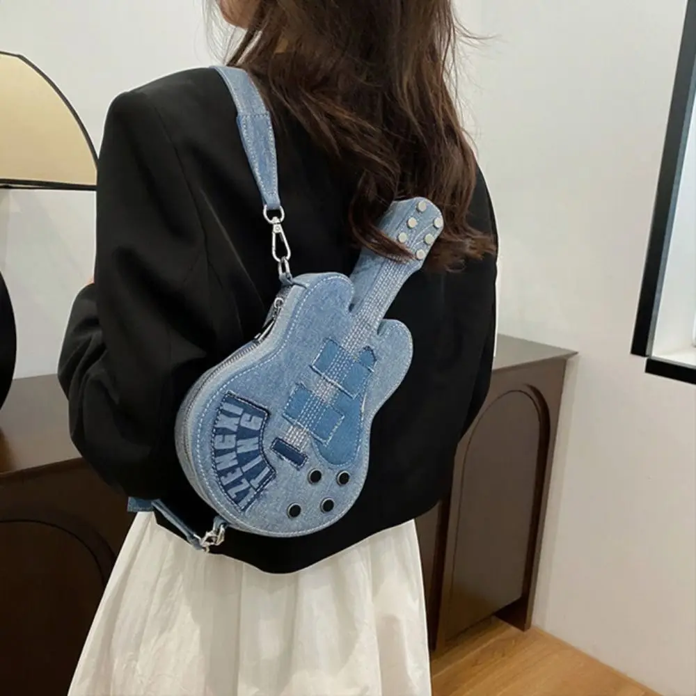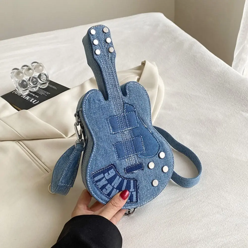 Simple Vintage Guitar Crossbody Jeans Bag Large Capacity Y2k